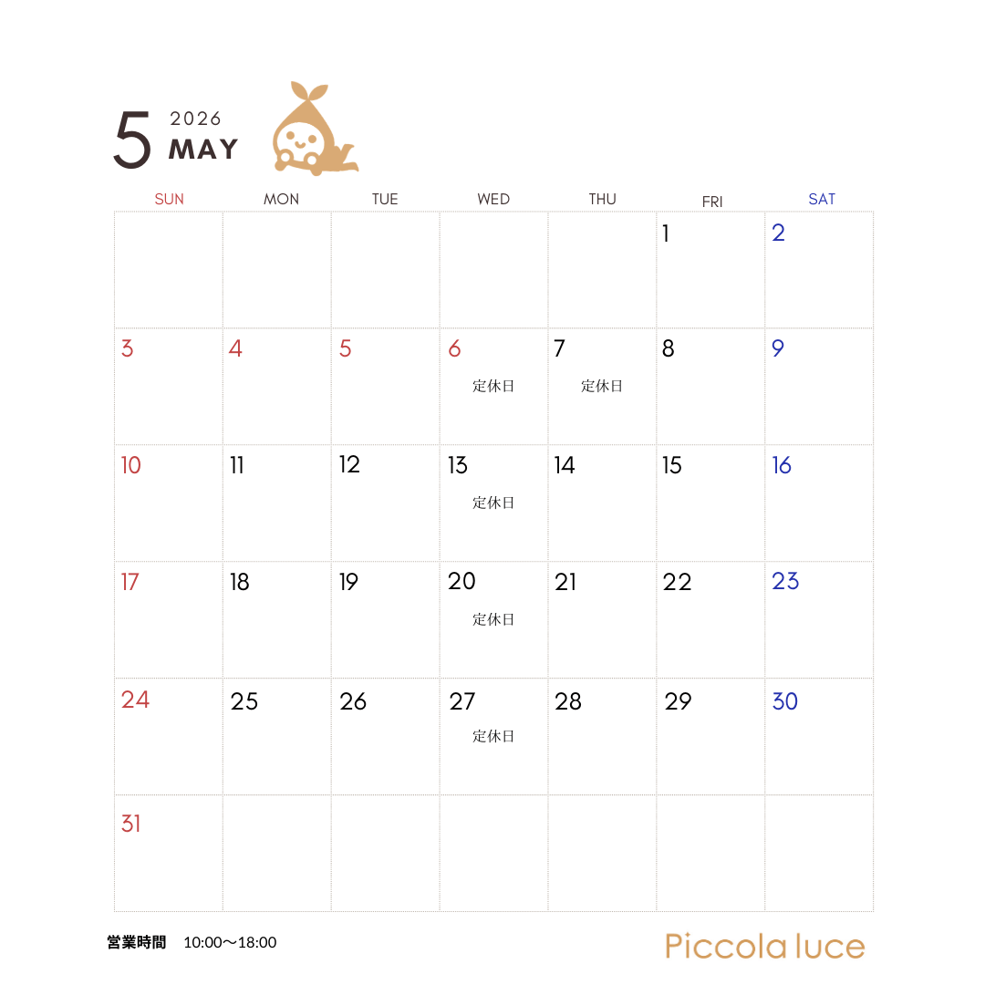 5月のご予約受付開始いたしました